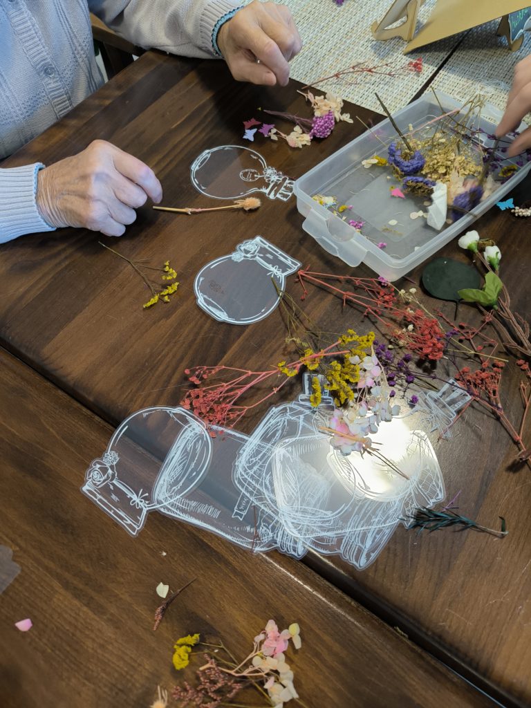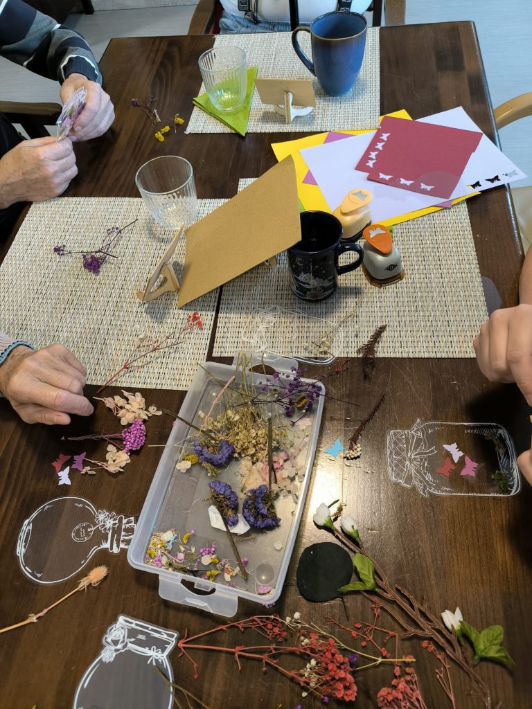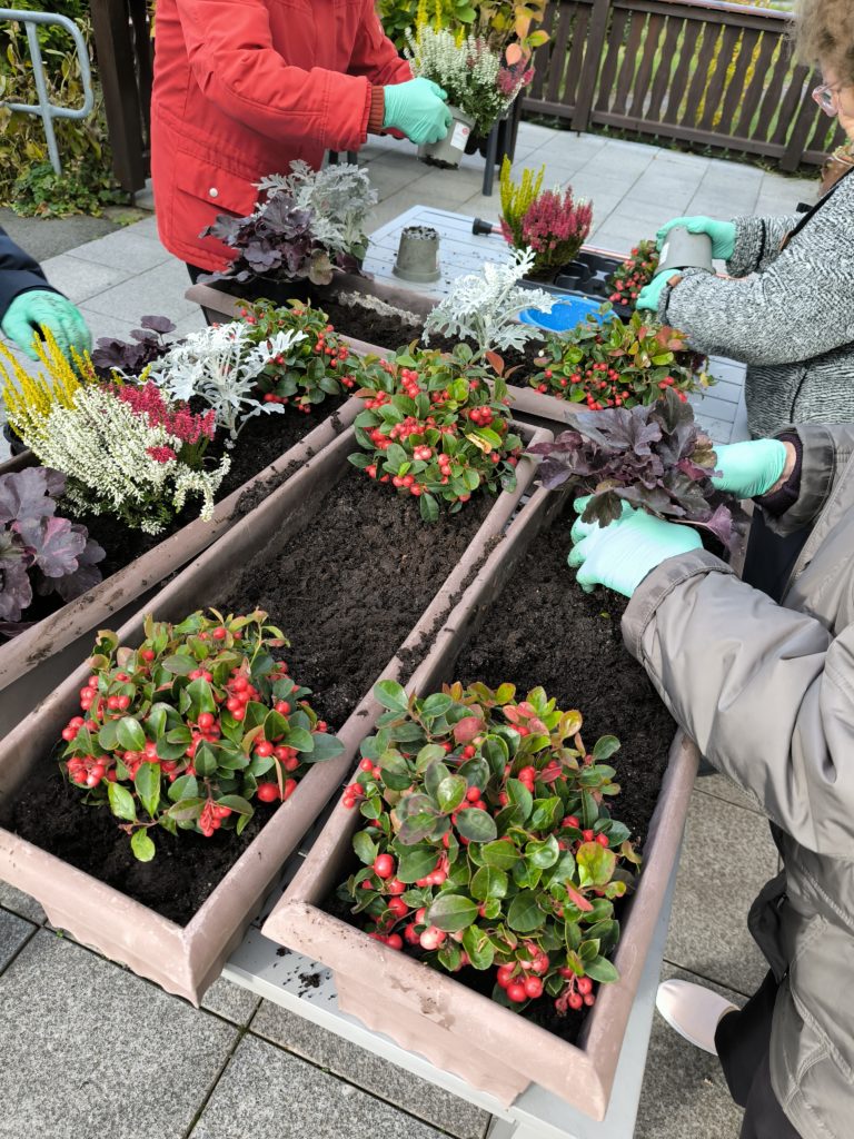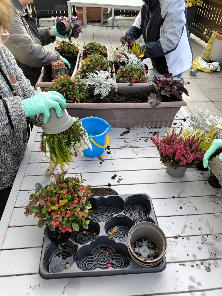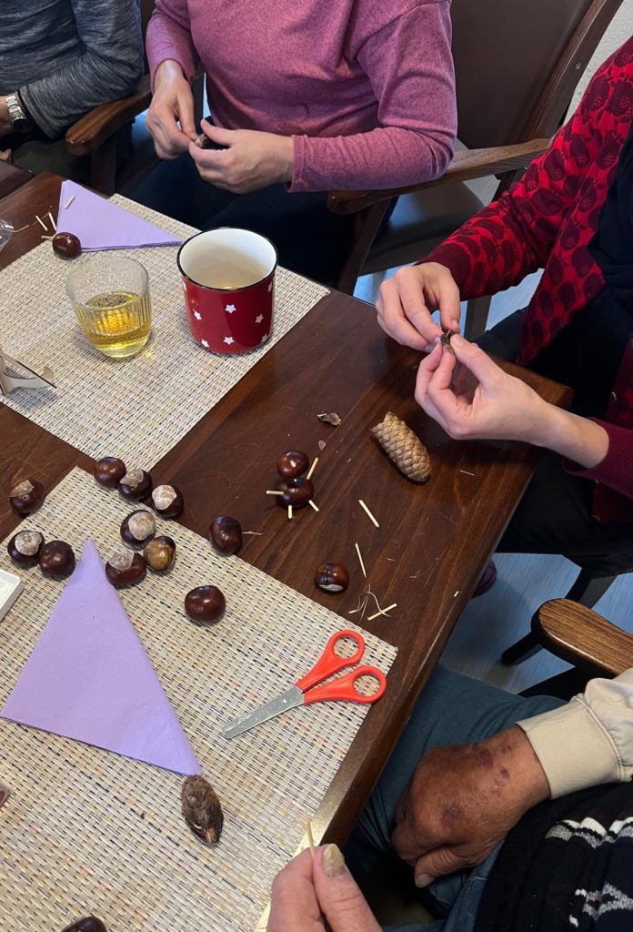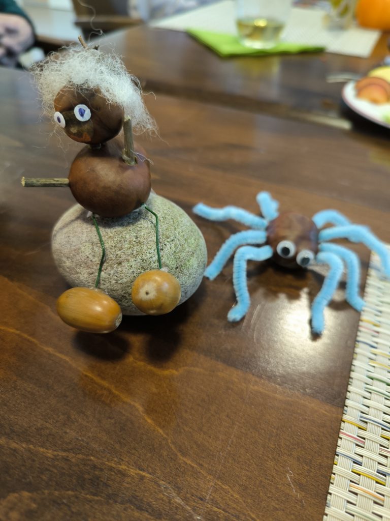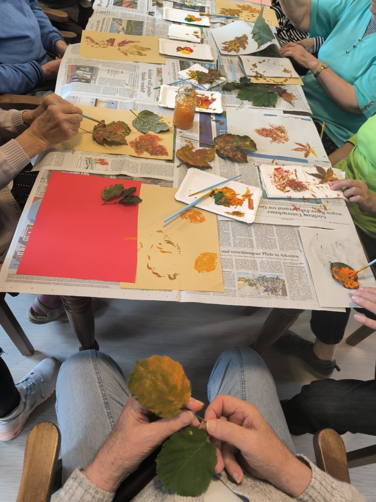 Gemeinsam mit unseren kreativen Gästen sind damit sehr schöne Sachen entstanden. Es zeigten einige Gäste unglaubliche Fingerfertigkeiten und Geschick. Es wurde gelacht und dabei Herbstlieder angestimmt.
