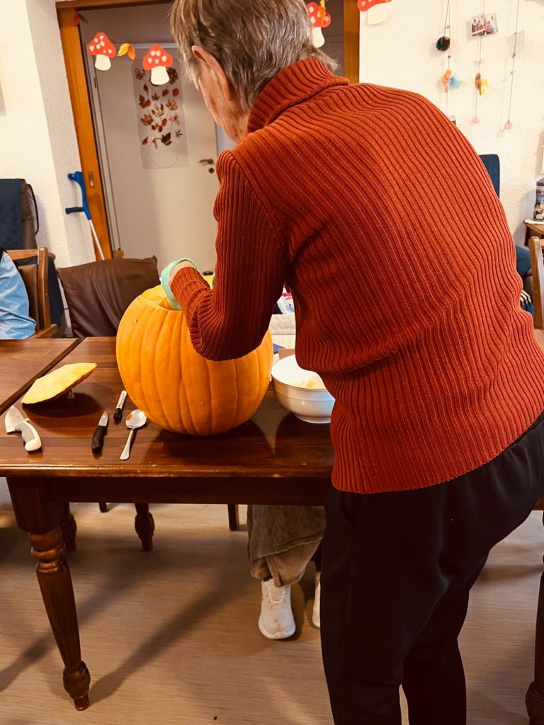 Herbst ist Kürbiszeit, einige Gäste höhlten fleißig Kürbisse aus und ritzten gruselige Gesichter hinein.