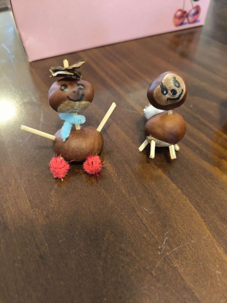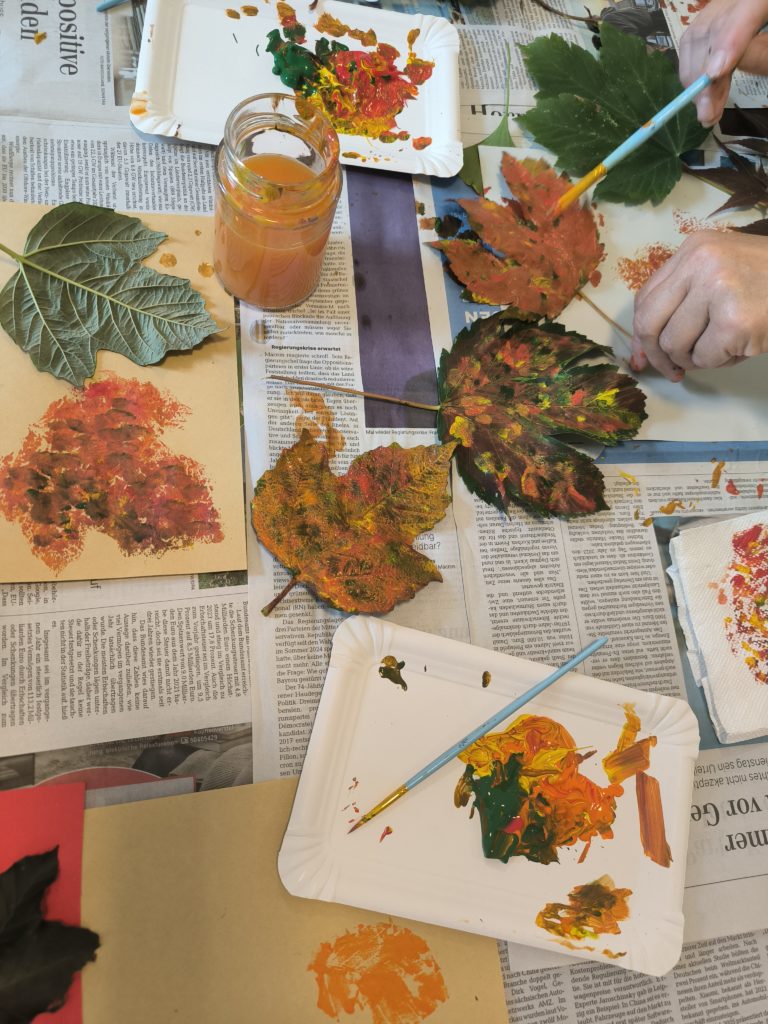 Viele bunte Blätter und Kastanien weht der Wind von den Bäumen. So viel schönes Naturmaterial zum basteln.